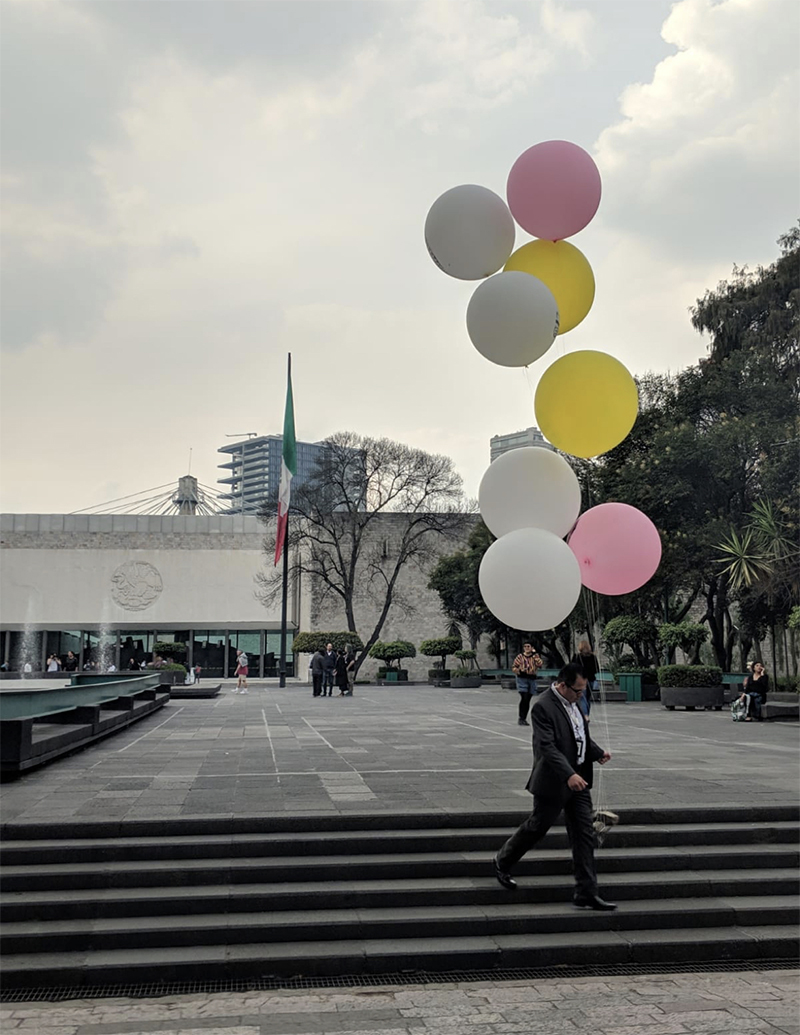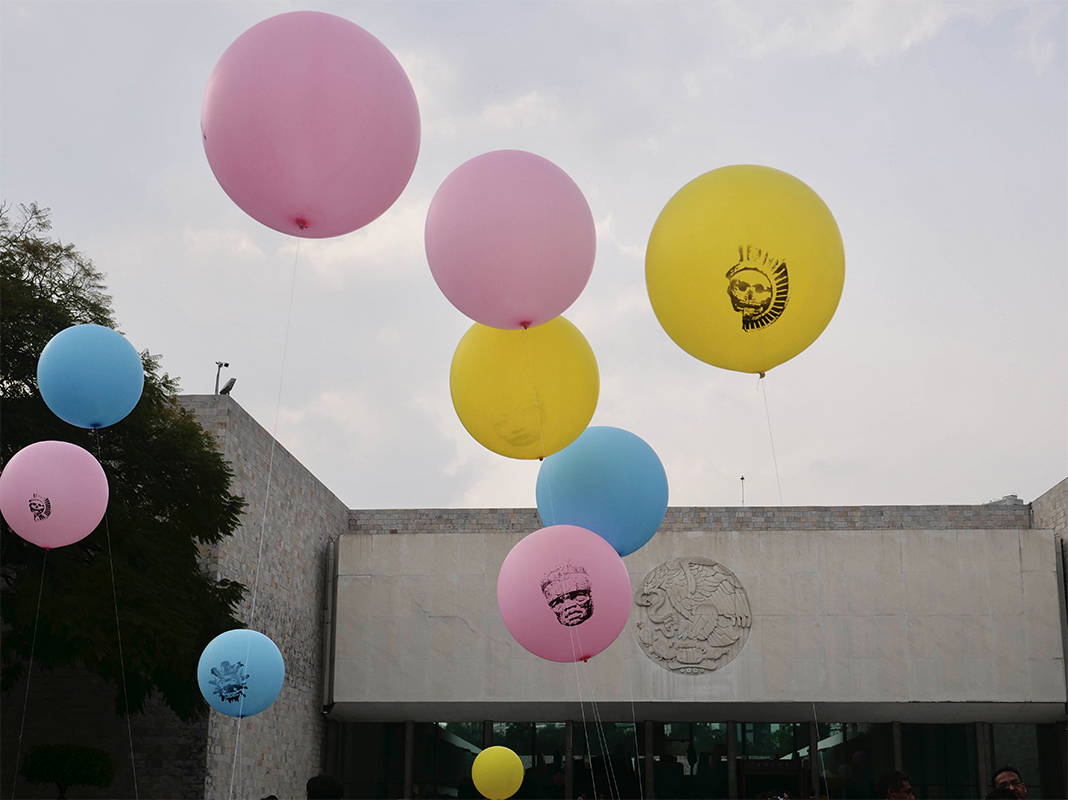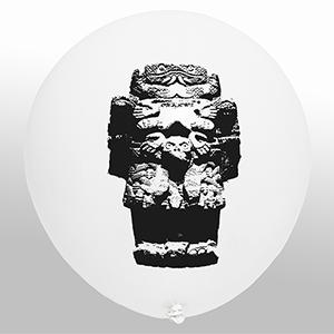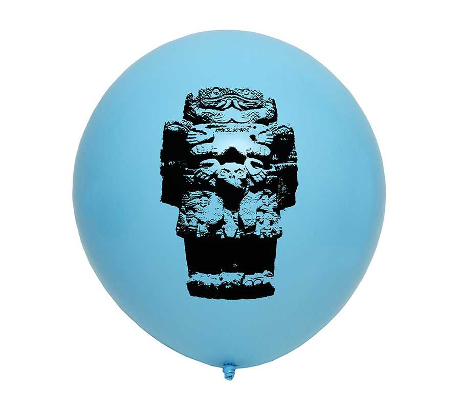This new collection of objects based on plastic and air establishes a symbolic relationship with the material where said installation appeals to the physical instability of the pieces through the inflatable sculpture, which, reproducing the image of works of pre-Hispanic art on filled balloons of air, contrasts with the materiality of the authentic pieces, which are mostly made of stone, glass or clay.