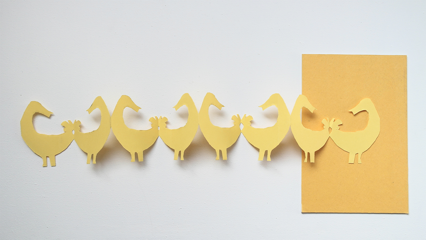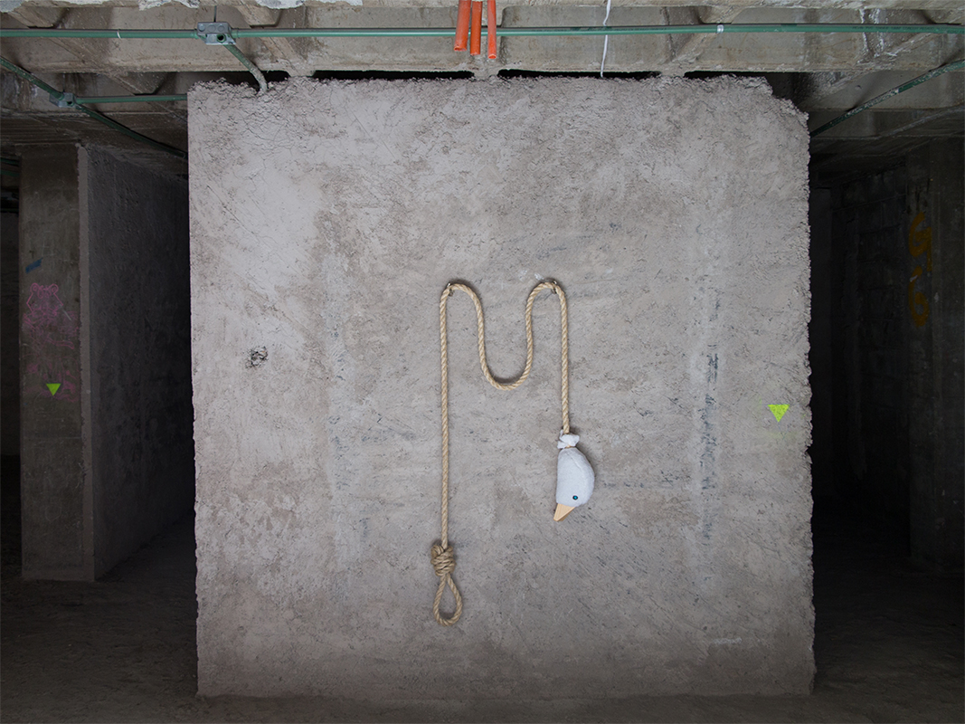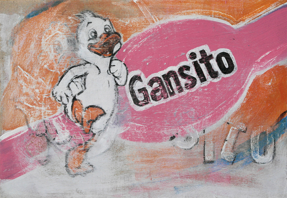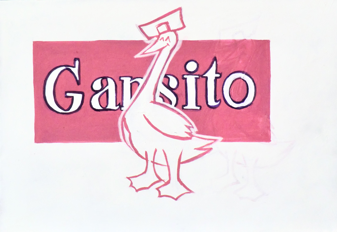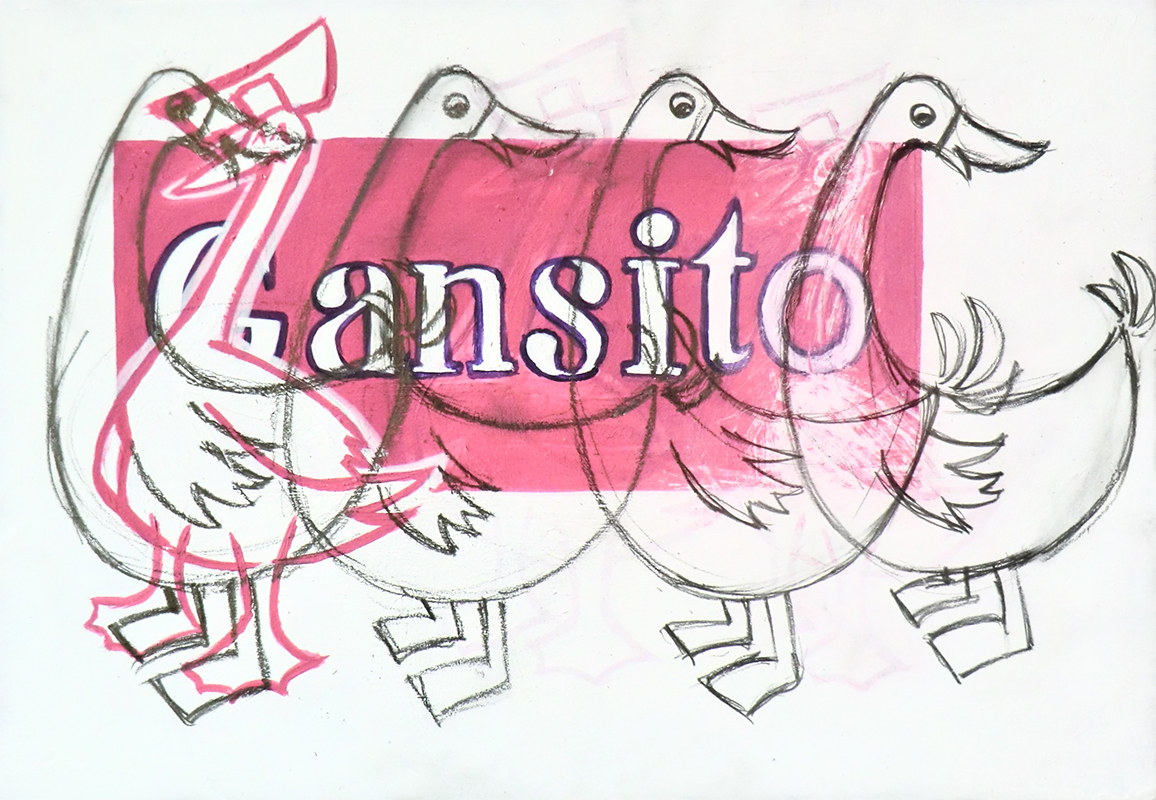 Based on a genealogical study of the Mexican pastry corporation, Marinela, Cuentos de papa ganso (Tales of Father Goose) is a wide-ranging series that brings together drawings and allegorical installations dedicated to Gansito Marinela, a small cake whose commercial boom exploded during the eighties in Mexico City through a marketing campaign that impacted generations due to its characteristic slogan “Recuérdame” (Remember me).